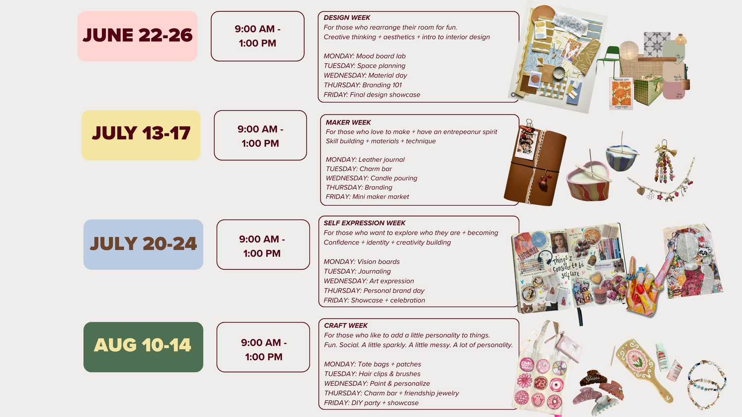 It’s a chance to unplug from screens, connect with new friends, and leave each day with something they’re proud of.